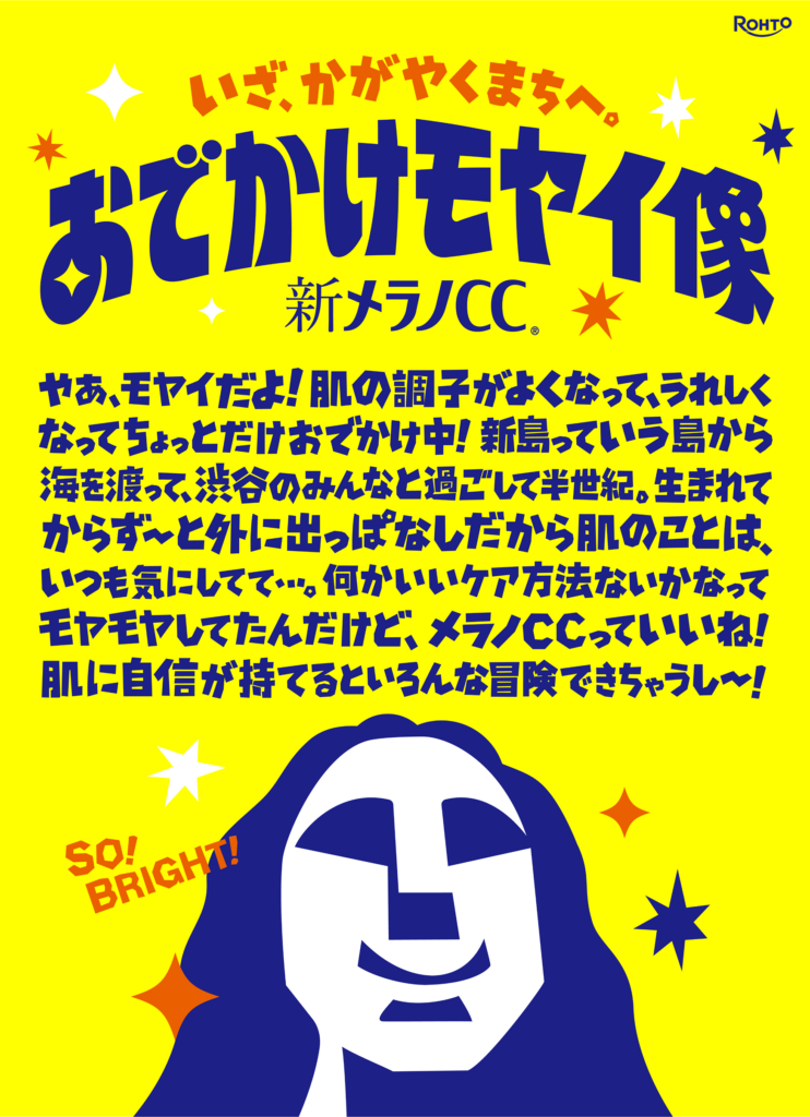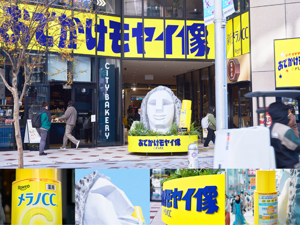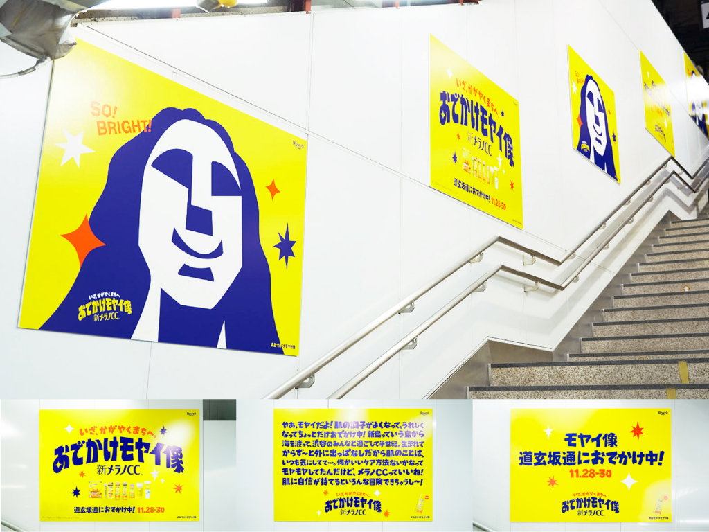 メラノCCで肌に自信を取り戻したモヤイ像は、お気に入りのメラノCC化粧水を片手に渋谷の中心通りへ“おでかけ”。 実際の移動はできないため、3Dスキャンで型取りした精巧なレプリカを制作しました。 本物に比べ、表情が明るく微笑んでいる点も話題性を生みました。