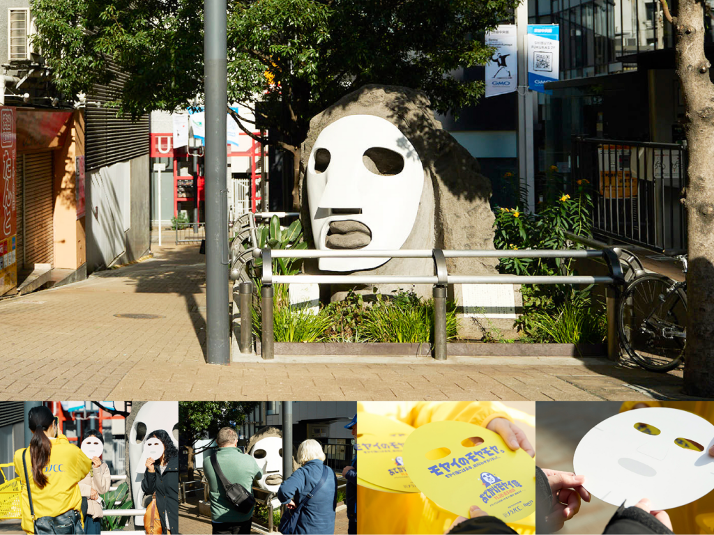 同時期に複数のモヤイ像が視認されるとストーリー性が薄れるため、 関係各所(渋谷区/新島村/商店街など)と調整し、本物のモヤイ像を「仮囲い」で隠すという大胆な演出を実施。 突然姿を消したモヤイ像に驚く通行人も多く、SNSでも話題になりました。