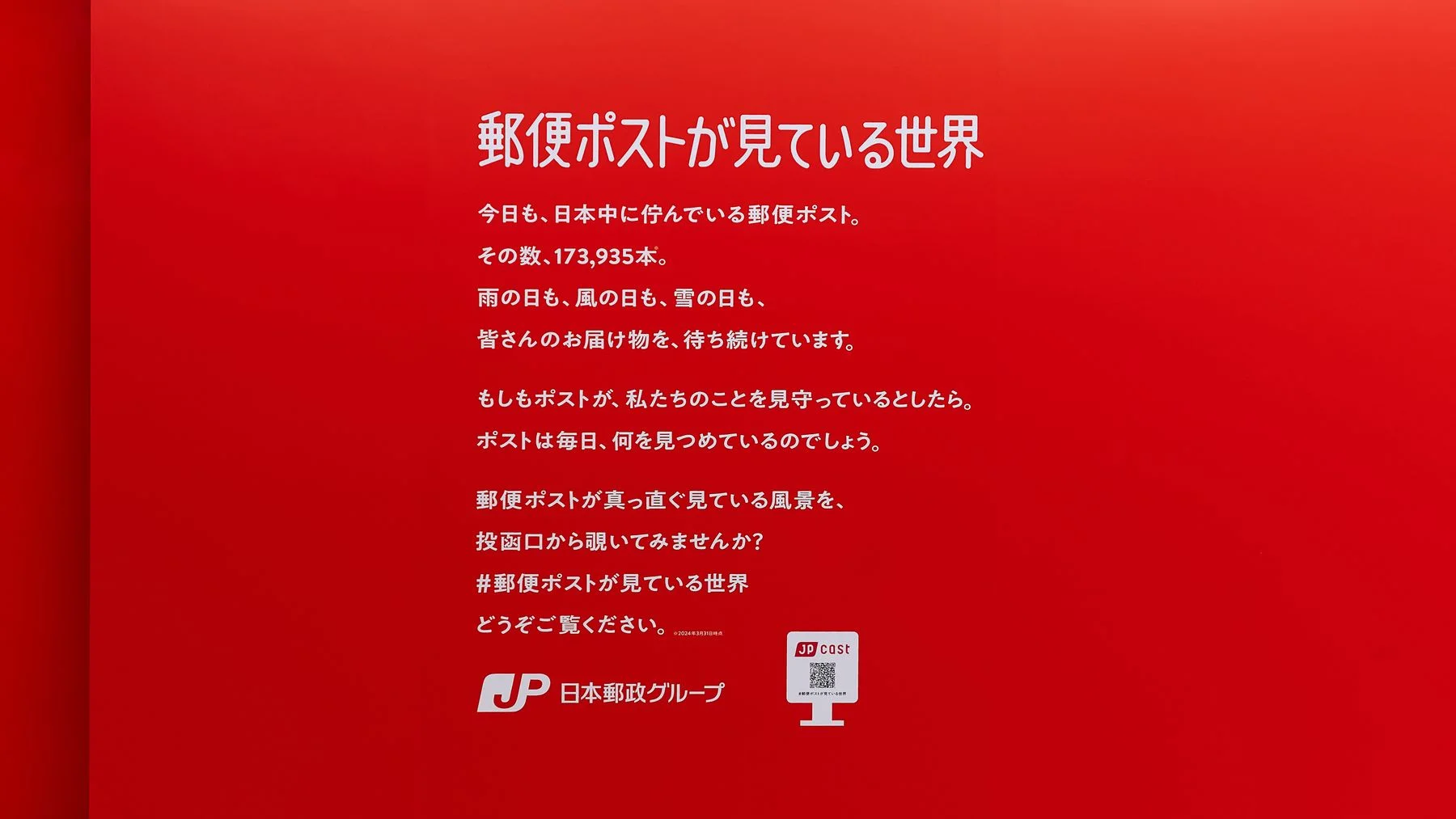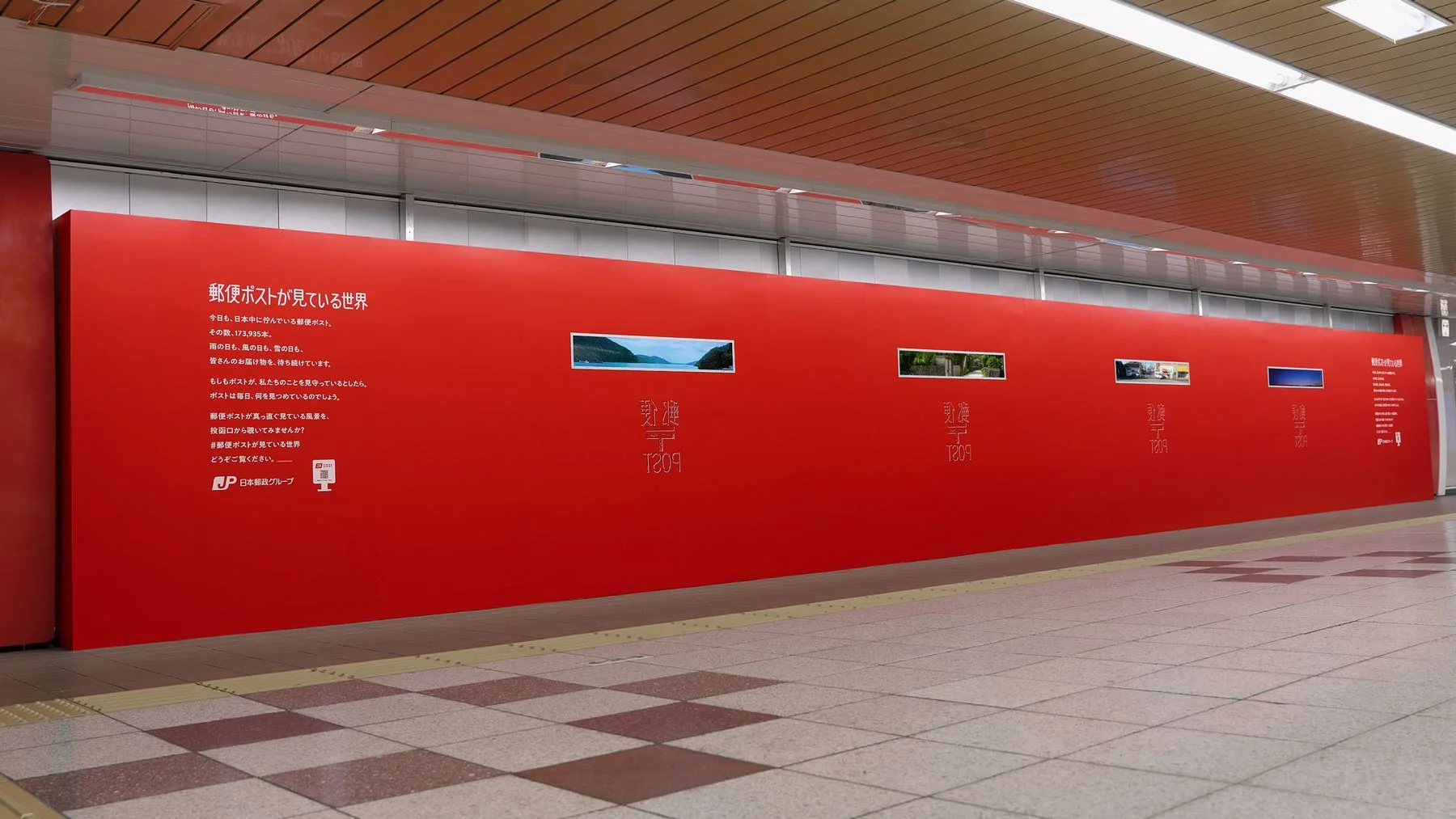 日本郵政グループの年間でブランドコミュニケーションを担当。年始の施策になります。郵便ポストは全国に17万本以上。この圧倒的な数字に着目し、インフラとしての力強さを訴求したいと考えました。もしもポストに「目」があったなら、日本中を見渡すことができるかも!?そんな発想からこの施策は生まれました。映像は「ポストの投函口」に比率を合わせた細すぎるWebCMを制作。東京メトロ新宿駅には街ゆく人々の足を止めるような「巨大な赤い壁」を設置。投函口を模した穴には、「ポスト主観の映像」を流すサイネージを仕込みました。まるで自分自身がポストになったかのように、世界を覗き込める広告です。日本郵政グループにしか実現できないユニークな広告は、多くの通行人に撮影いただき、二次拡散してXやネット上でも様々な反応を獲得しました。デジタル化が進む社会で「郵便」の存在や役割を見つめ直して欲しいーそんな想いを込めたプロジェクトでした。