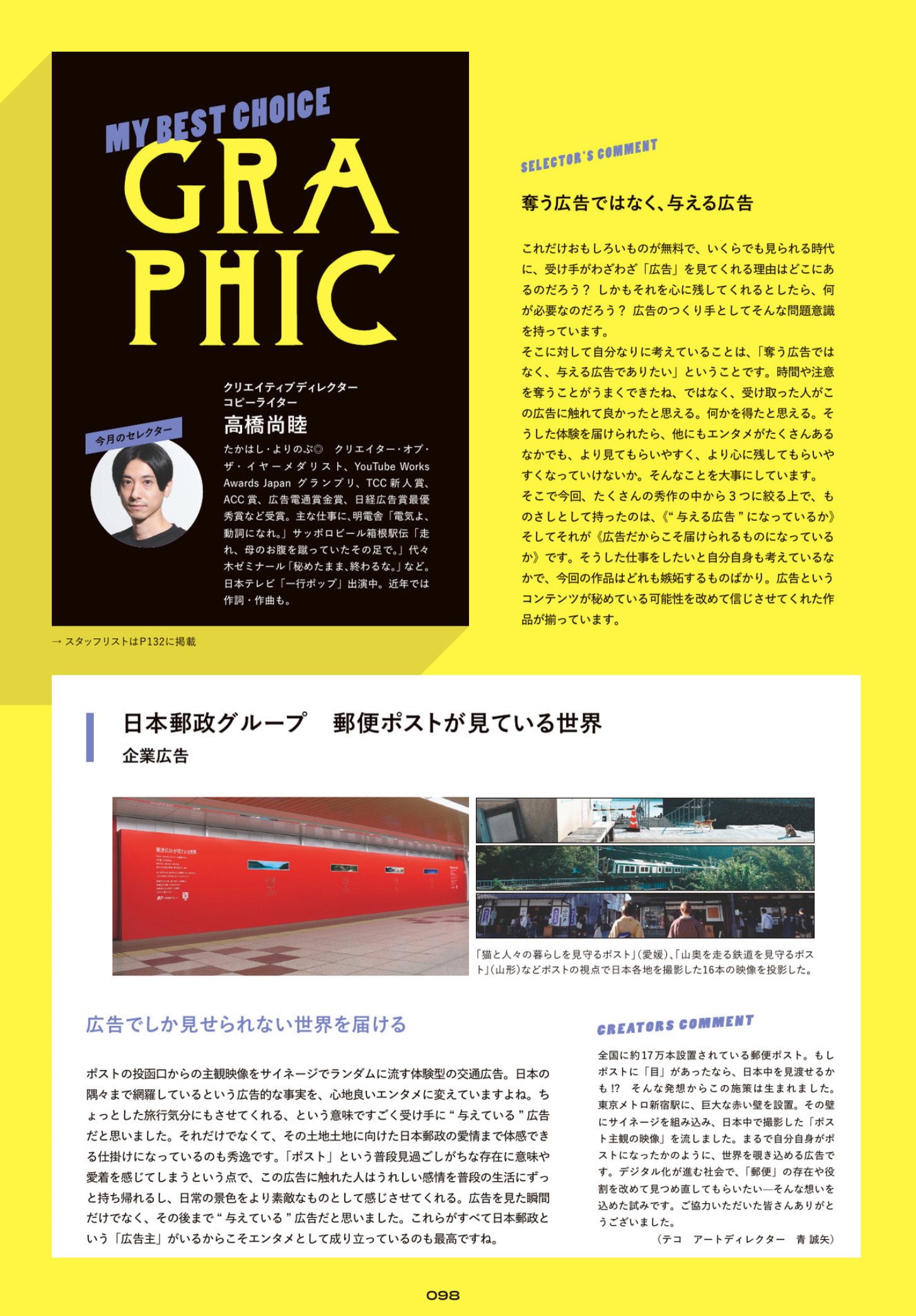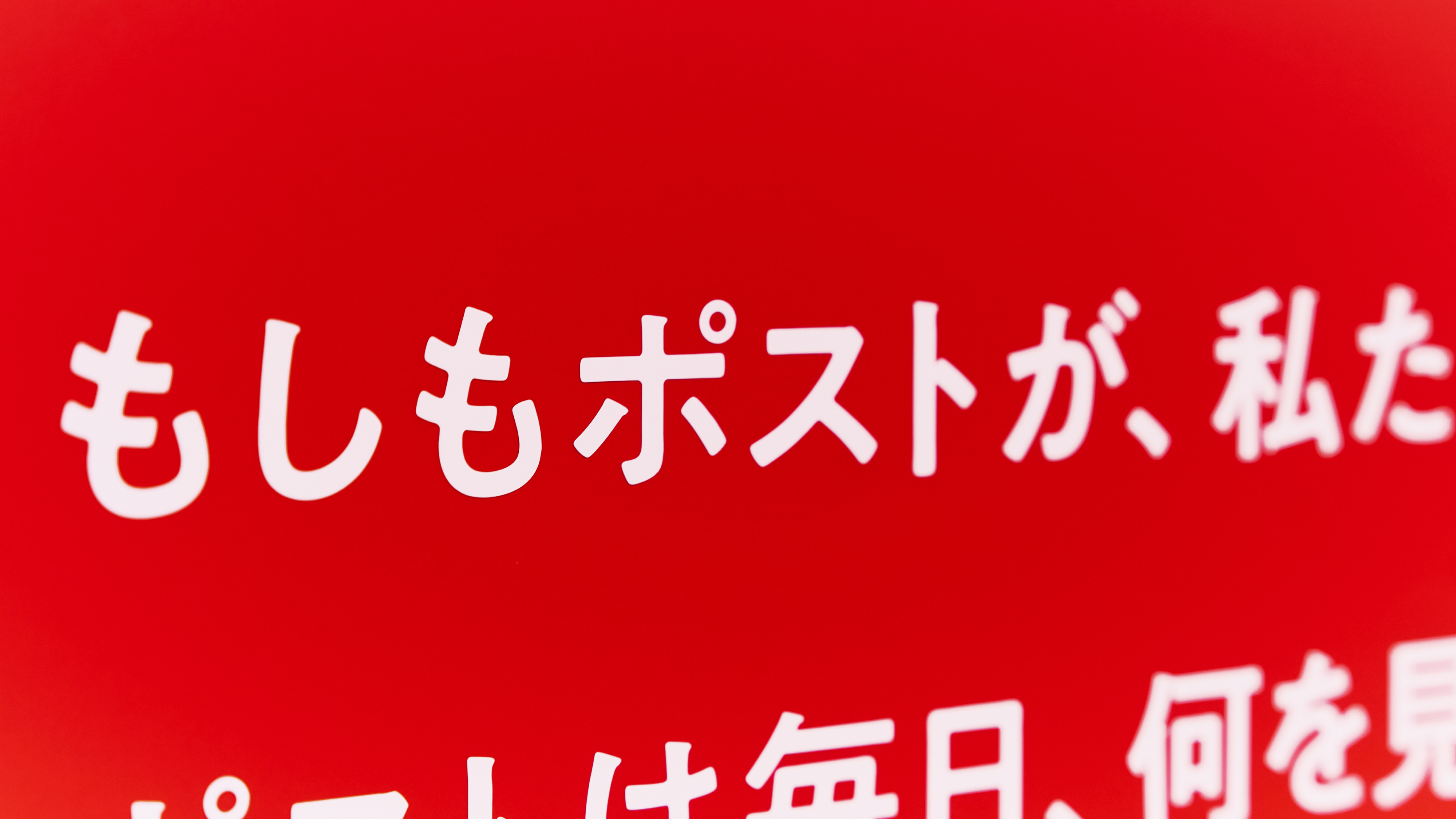 日本郵政グループの年間でブランドコミュニケーションを担当。年始の施策になります。郵便ポストは全国に17万本以上。この圧倒的な数字に着目し、インフラとしての力強さを訴求したいと考えました。もしもポストに「目」があったなら、日本中を見渡すことができるかも!?そんな発想からこの施策は生まれました。映像は「ポストの投函口」に比率を合わせた細すぎるWebCMを制作。東京メトロ新宿駅には街ゆく人々の足を止めるような「巨大な赤い壁」を設置。投函口を模した穴には、「ポスト主観の映像」を流すサイネージを仕込みました。まるで自分自身がポストになったかのように、世界を覗き込める広告です。日本郵政グループにしか実現できないユニークな広告は、多くの通行人に撮影いただき、二次拡散してXやネット上でも様々な反応を獲得しました。デジタル化が進む社会で「郵便」の存在や役割を見つめ直して欲しいーそんな想いを込めたプロジェクトでした。