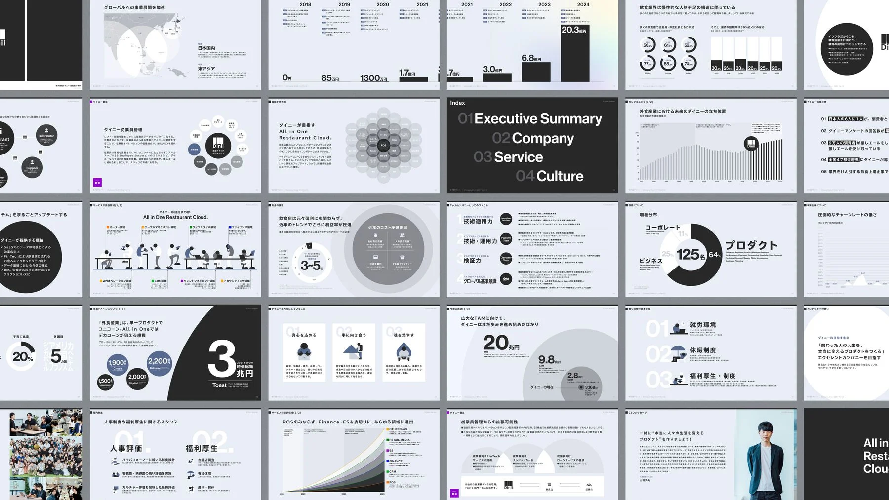 飲食店のモバイルオーダーサービスで広く知られて株式会社ダイニー(旧:dinii)は、2024年9月にシリーズBラウンドで74.6億円の資金調達や新サービスを発表。飲食業界のあらゆる課題解決をしていく外食産業のインフラを目指し、同タイミングでリブランディングを実施しました。弊社では、ブランドコアの設計からビジュアルアイデンティティの策定、展開デザインまでを担当しました。
