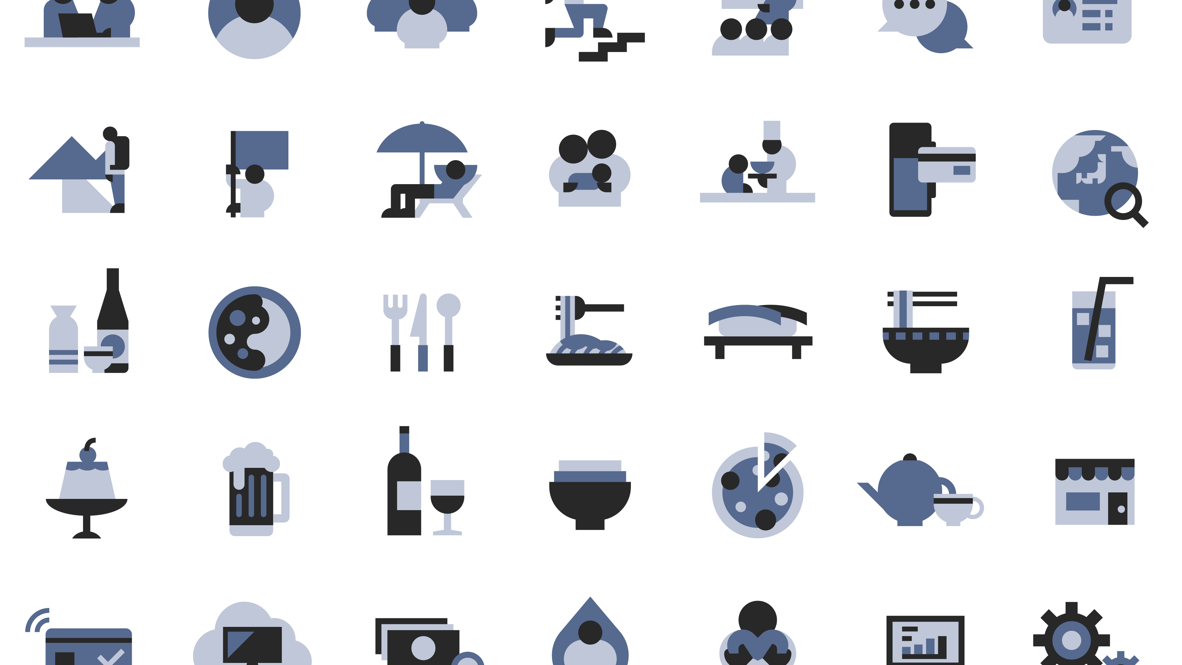ブランドロゴと同じ構造指針で、丸と四角を切り出したアイコンイラスト。加えて、柔軟に事業や事象を説明するための要素として表情をつけたイラストレーションを開発しました。